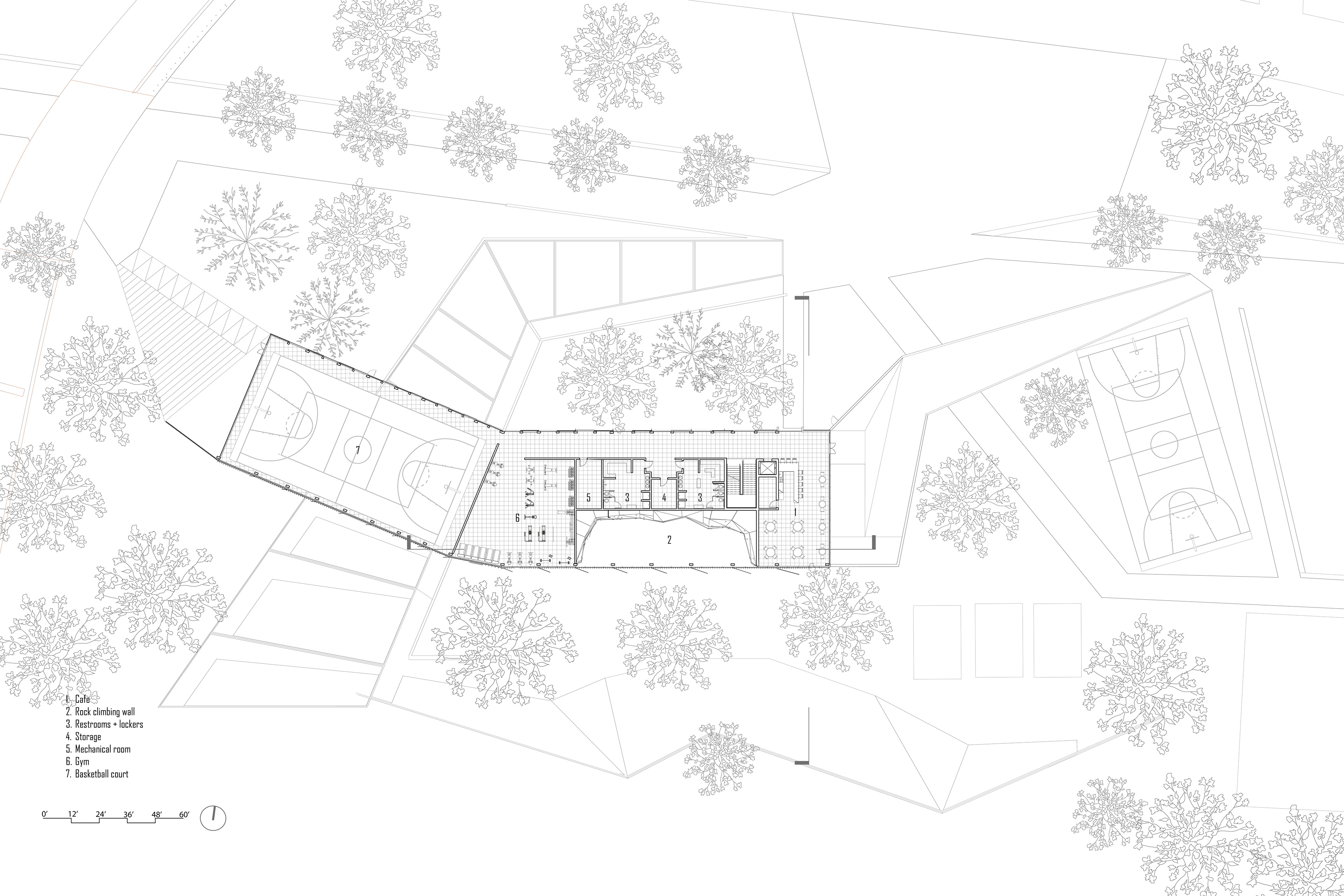 NLR Sports Complex is a riverfront architectural project that engages with architecture of the ground by employing strategies to recover and expand the public domain in Little Rock and North Little Rock. With a focus on creating inclusive spaces for people to interact with mother nature, this project gives people the opportunity to be closer to the Arkansas River by bringing the river itself to the site by a series of courts.